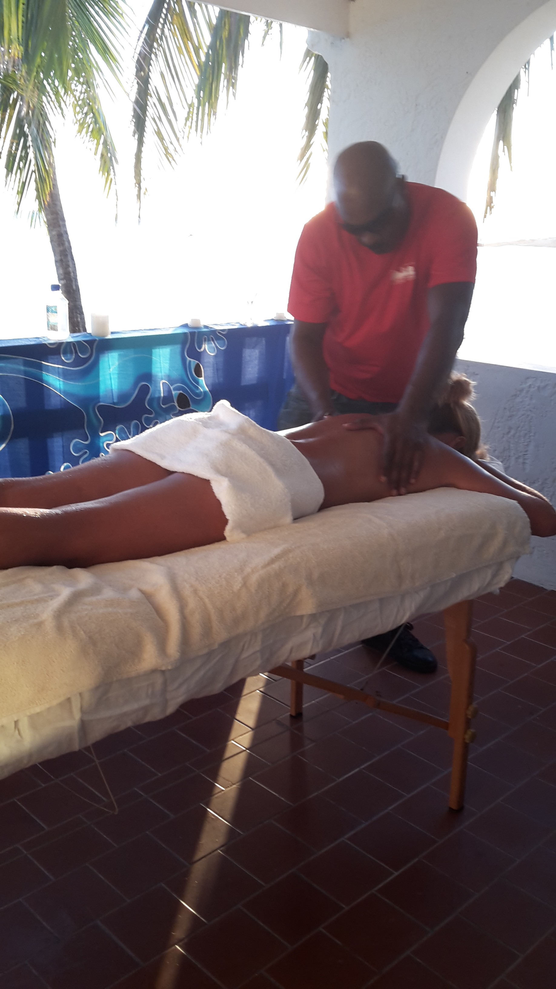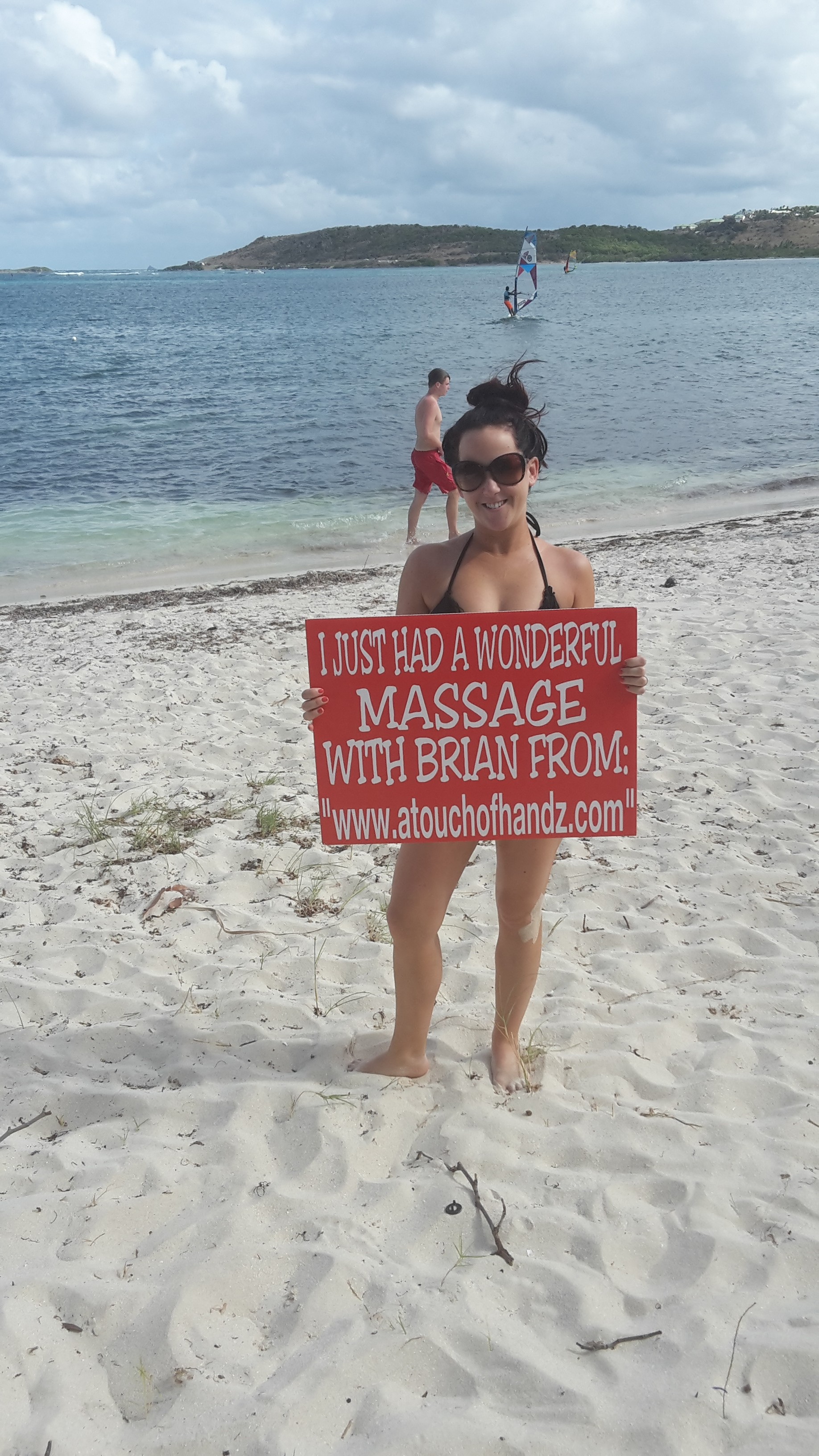 just enjoyed her massage at Le Galion beach with Brian "A touch of hands"