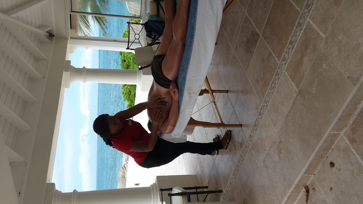 swedish massage at Guana Bay. Masseuse Gloria posing with the client